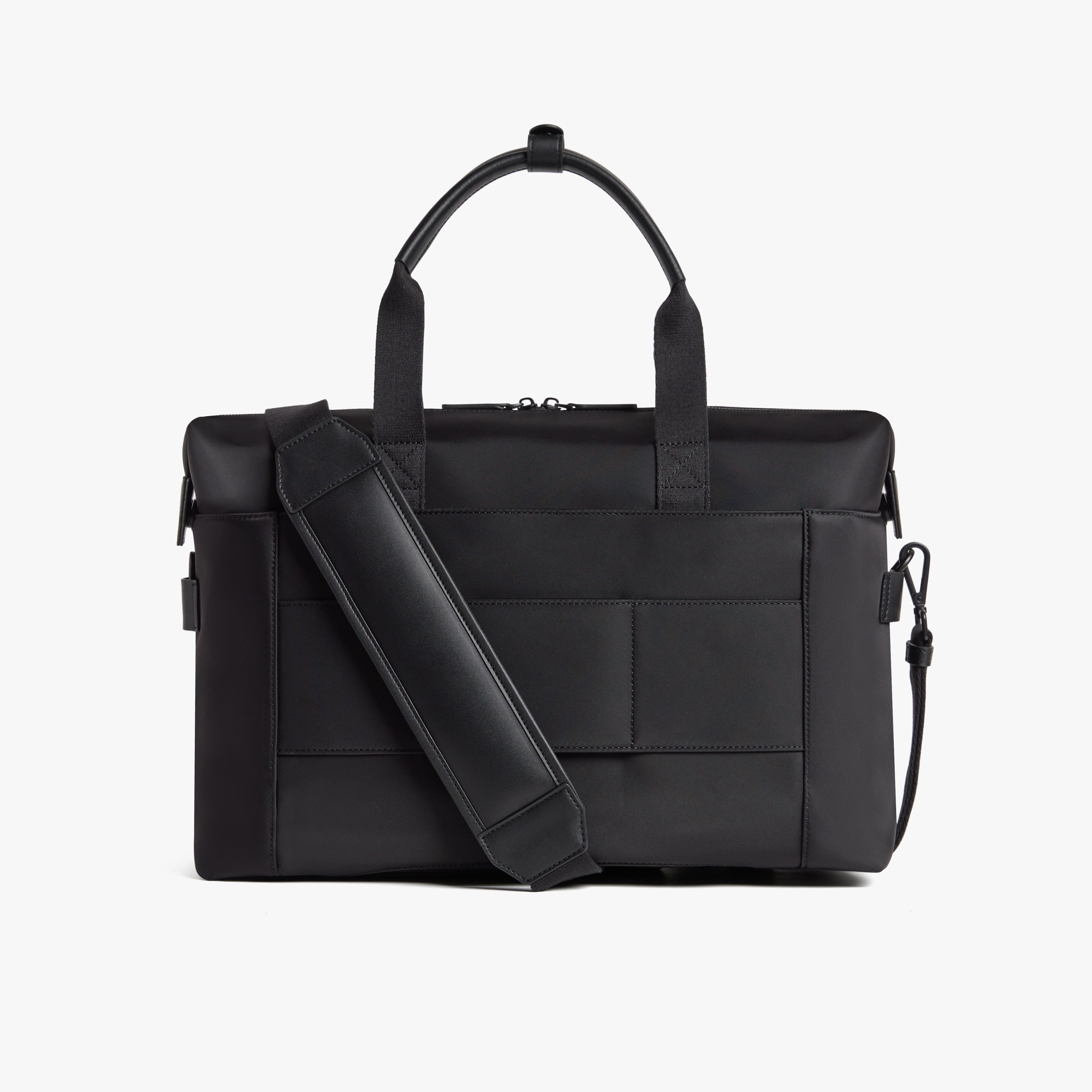 Both the nylon and vegan leather finishes are water and scratch-resistant