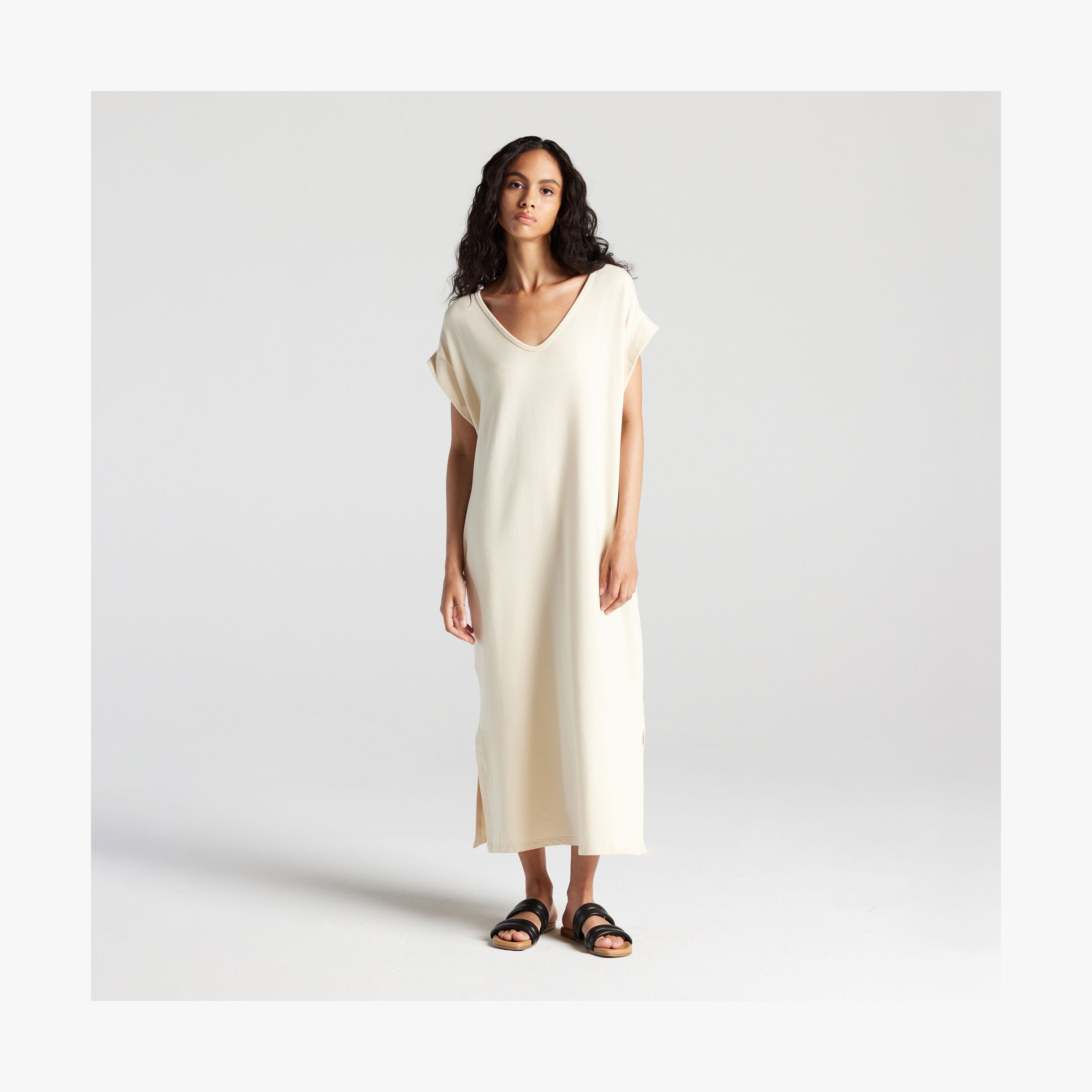 The Sevilla Dress is part of the Everywear collection, our line of classic wardrobe essentials designed for relaxed, comfortable living. Made in Canada.