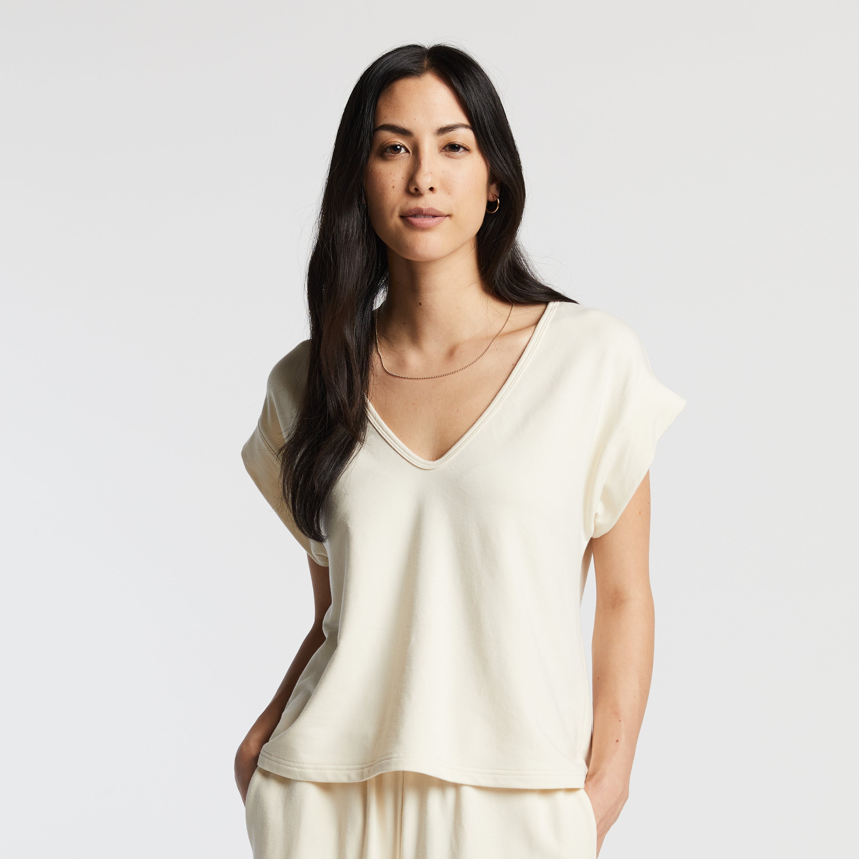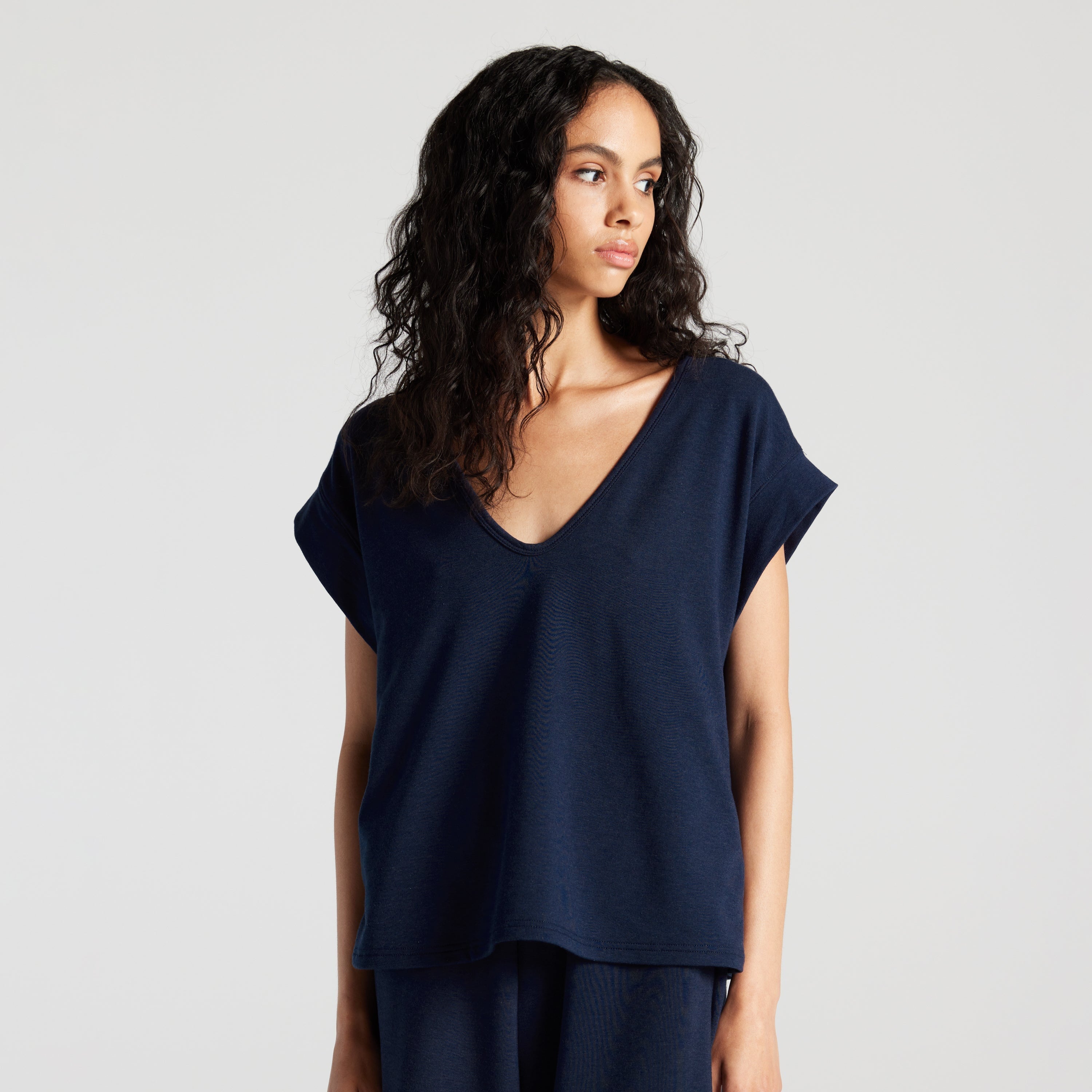 With flowing lines and a breezy, relaxed fit, the Sevilla Top is the embodiment of all-day comfort and easy elegance. Highly versatile, the short-sleeved top is front-back reversible with a V-neck on one side and a high neck on the other, providing two looks in one garment. Crafted with a supremely soft blend of sustainable bamboo rayon and breathable cotton, this airy top has a natural lustre and form-flattering drape. Pair with our Sevilla Pants for head-to-toe comfort wherever you go.